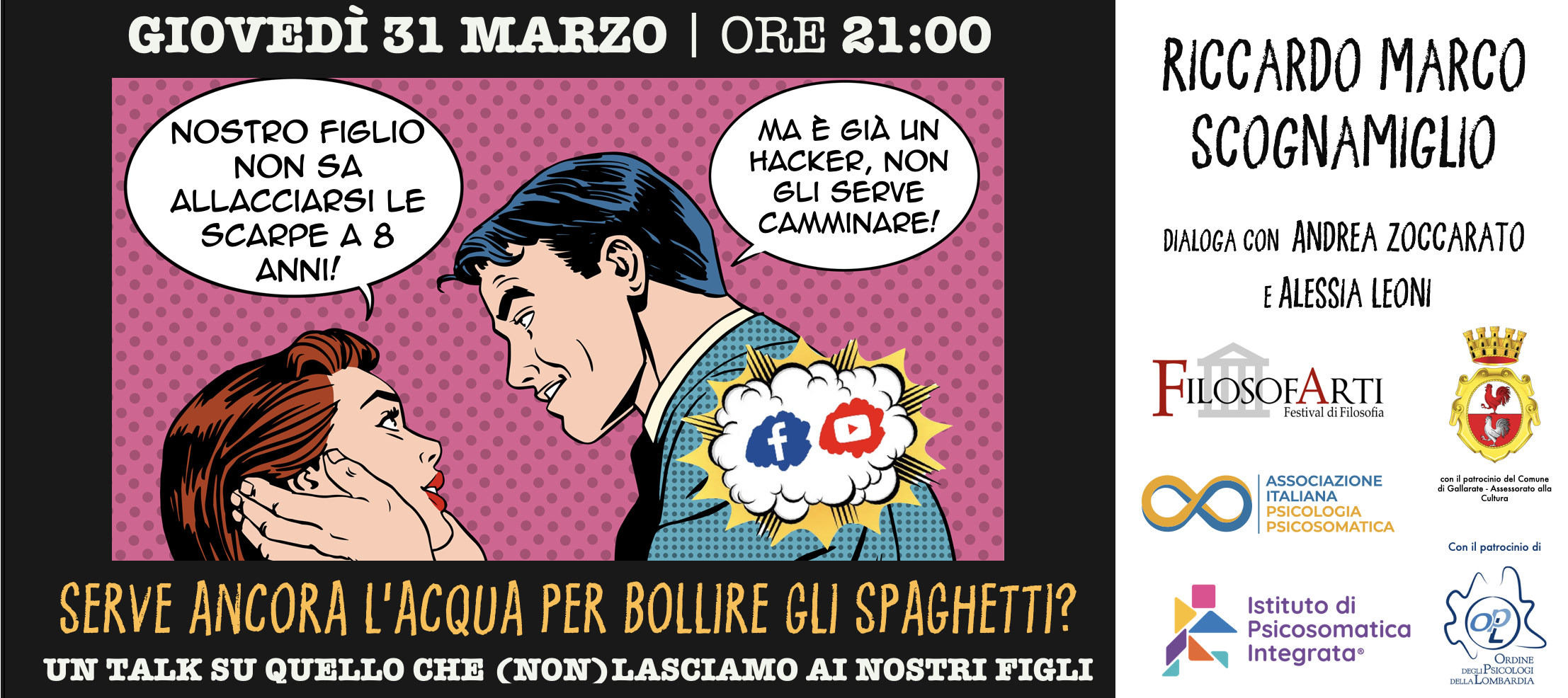 L’incontro incluso nella prestigiosa rassegna FilosofArti, sarà disponibile online giovedì 31 Marzo alle ore 21:00 su YouTube e i canali Facebook dell’Associazione Italiana di Psicologia Psicosomatica, Istituto di Psicosomatica Integrata e Nuova Clinica Nuovi Setting | Scuola di Psicoterapia Analitica di Gruppo.