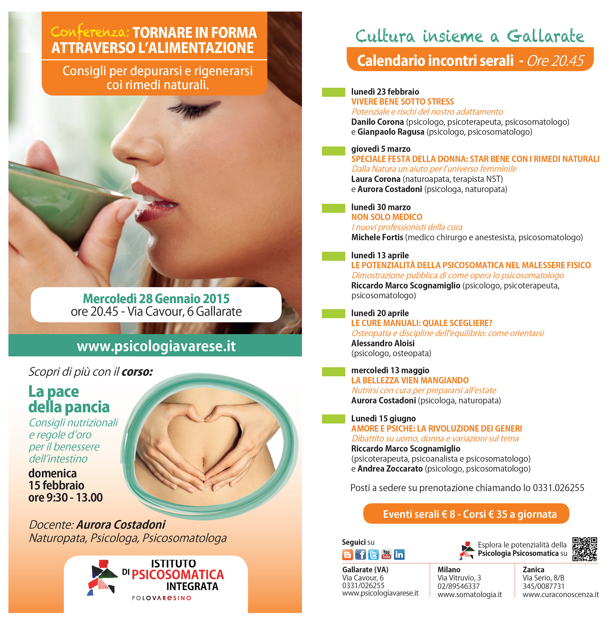 Posti a sedere su prenotazione chiamando lo 0331 026255 o scrivendo a info@psicologiavarese.it